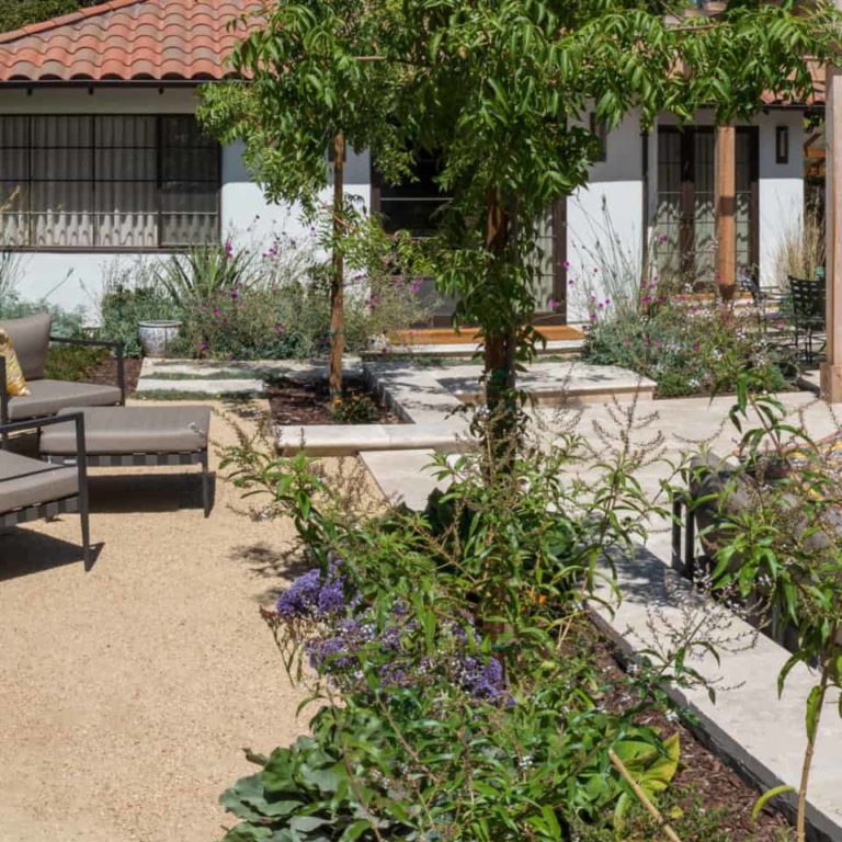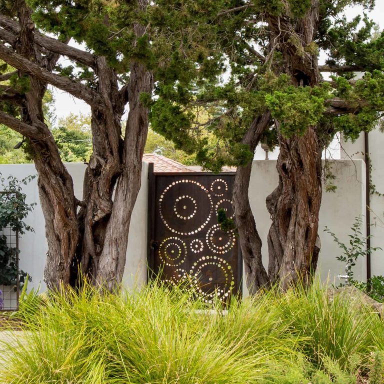 This amazing transformation of Contemporary style blends with the home’s original Mission architecture. Featuring custom fabricated steel gates and privacy screens, modern accents are kept at a tasteful minimum to maximize their impact. Functionality is key for this family. The new garden has room for entertaining on multiple levels and boasts generous seating for evening entertaining or quiet corners to read and relax in.
